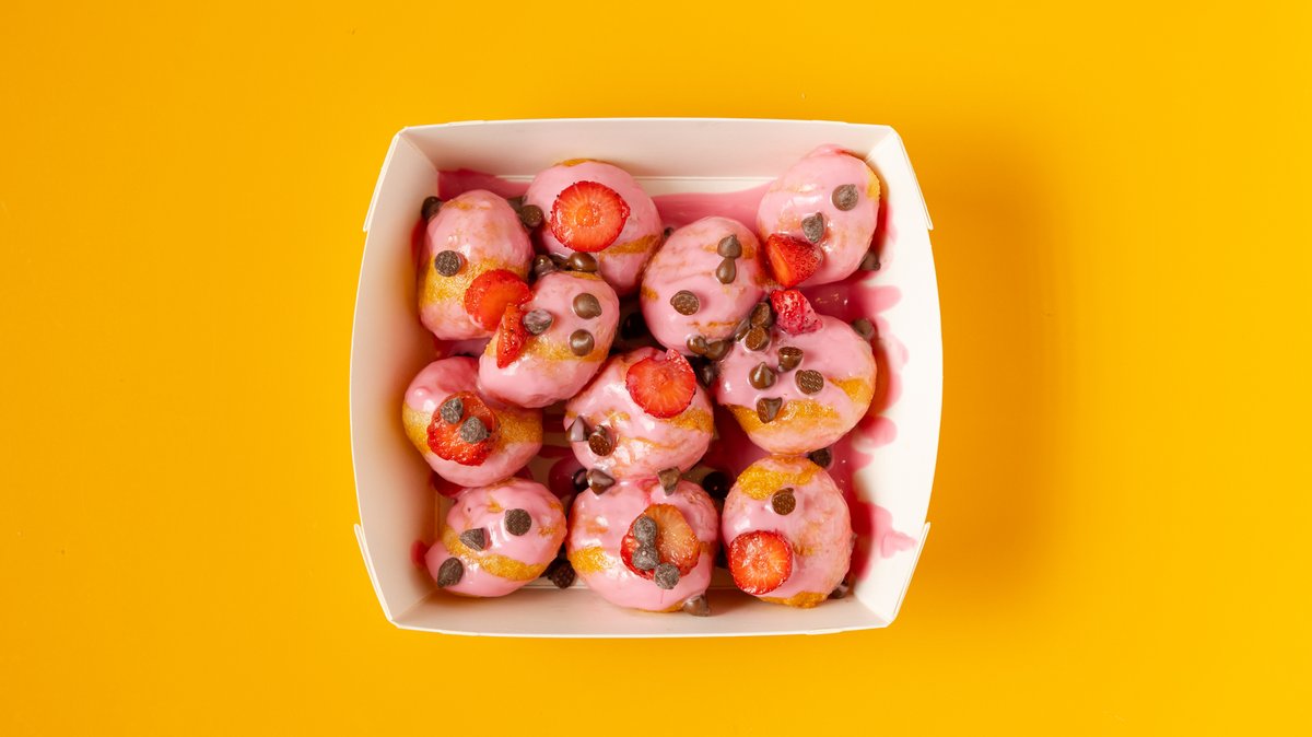 Με πραλίνα φράουλα, σταγόνες σοκολάτας υγείας και φρεσκοκομμένες φράουλες