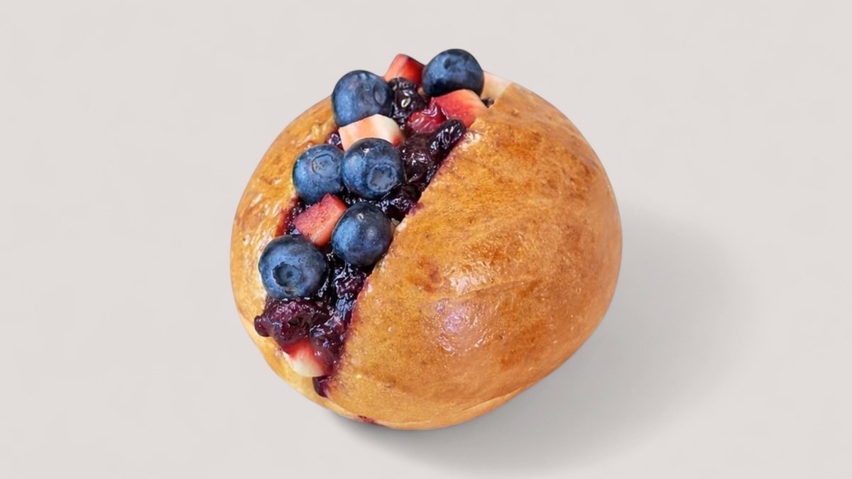 Αφράτο τσουρέκι με κρέμα βανίλιας, μαρμελάδα φρούτων του δάσους και φρέσκα φρούτα του δάσους