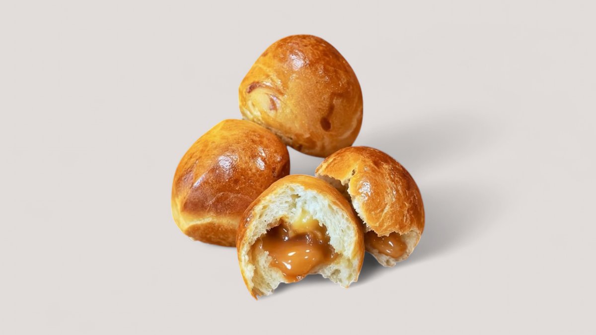 ~50 g Μίνι εκδοχή για brunch, office snacks ή πλατό. Αφράτη μέσα, τραγανή έξω.