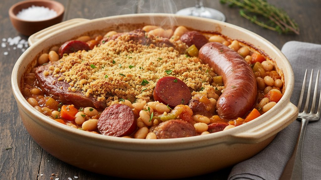 Φασόλια κασουλέ με λουκάνικα και λαχανικά