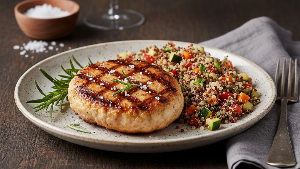 Κοτόπουλο Μπιφτέκι Σχάρας και Δίχρωμη Κινόα με Λαχανικά