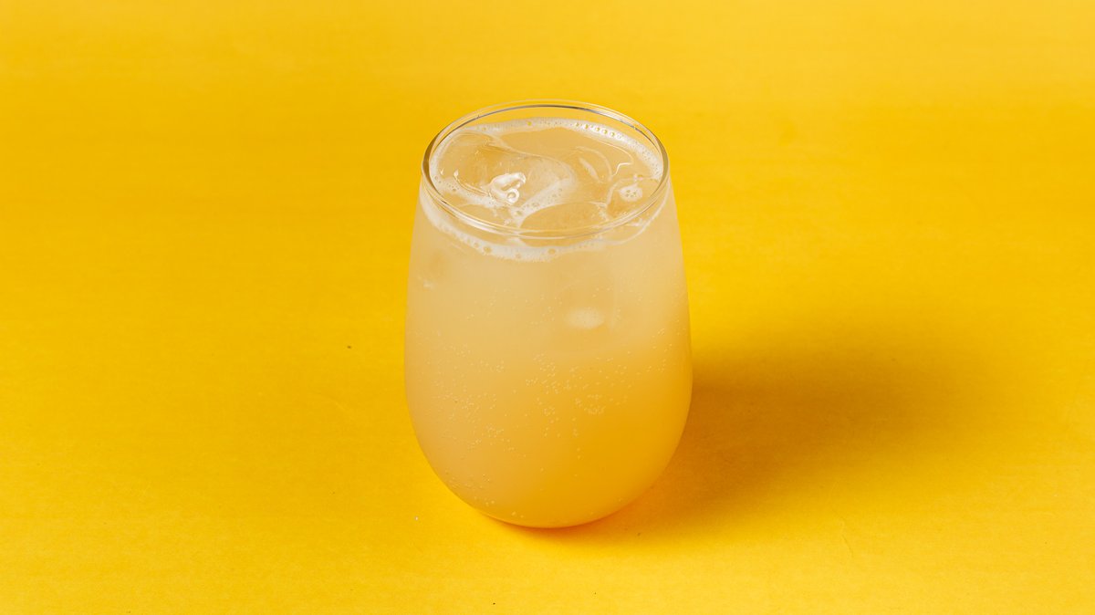 Λεμόνι φρεσκοστυμμένο αρωματισμένο με μυρωδικά, βότανα, σιρόπι αγάβης και ανθρακούχο μεταλλικό νερό