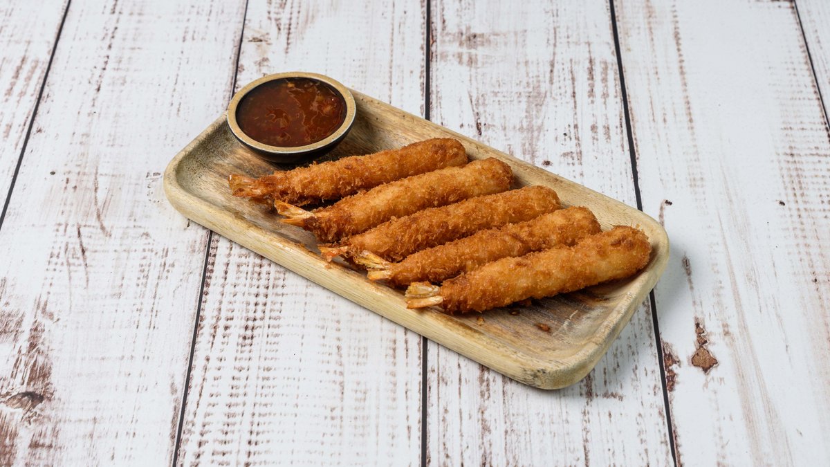 5 Τεμάχια. Γαρίδες τηγανητές πανέ με γλυκοκαυτερή sauce