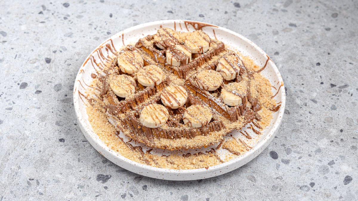 Πραλίνα σοκολάτα, μπανάνα, τριμμένο μπισκότο