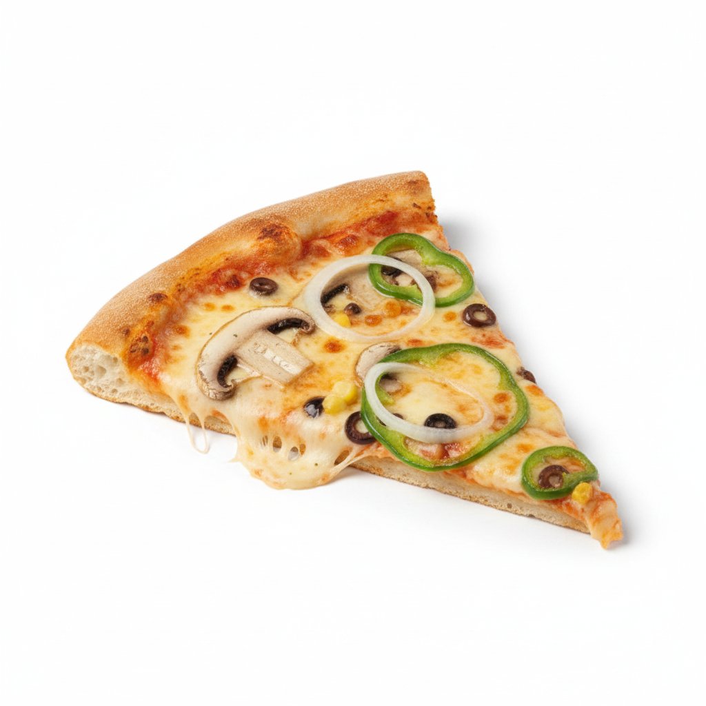 Με ζύμη πίτσας, σάλτσα ντομάτας, τυρί gouda, φρέσκα μανιτάρια, πιπεριά, κρεμμύδι και φρέσκια ντομάτα