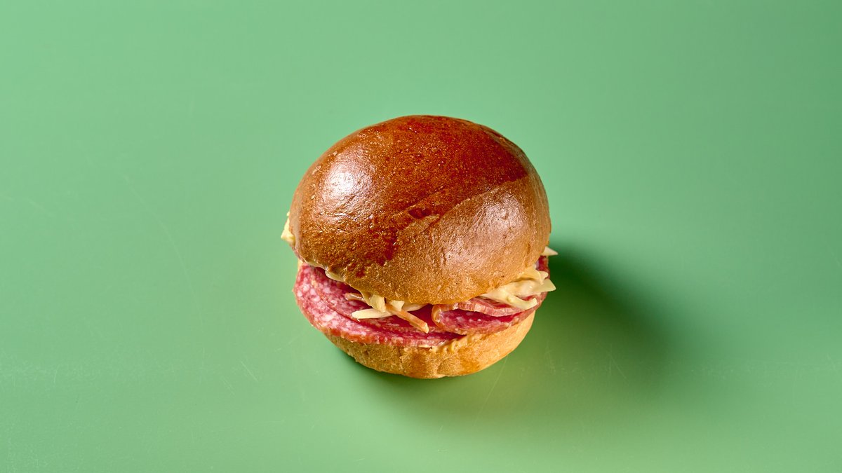 Brioche με σαλάμι αέρος, λάχανο, καρότο και french sauce