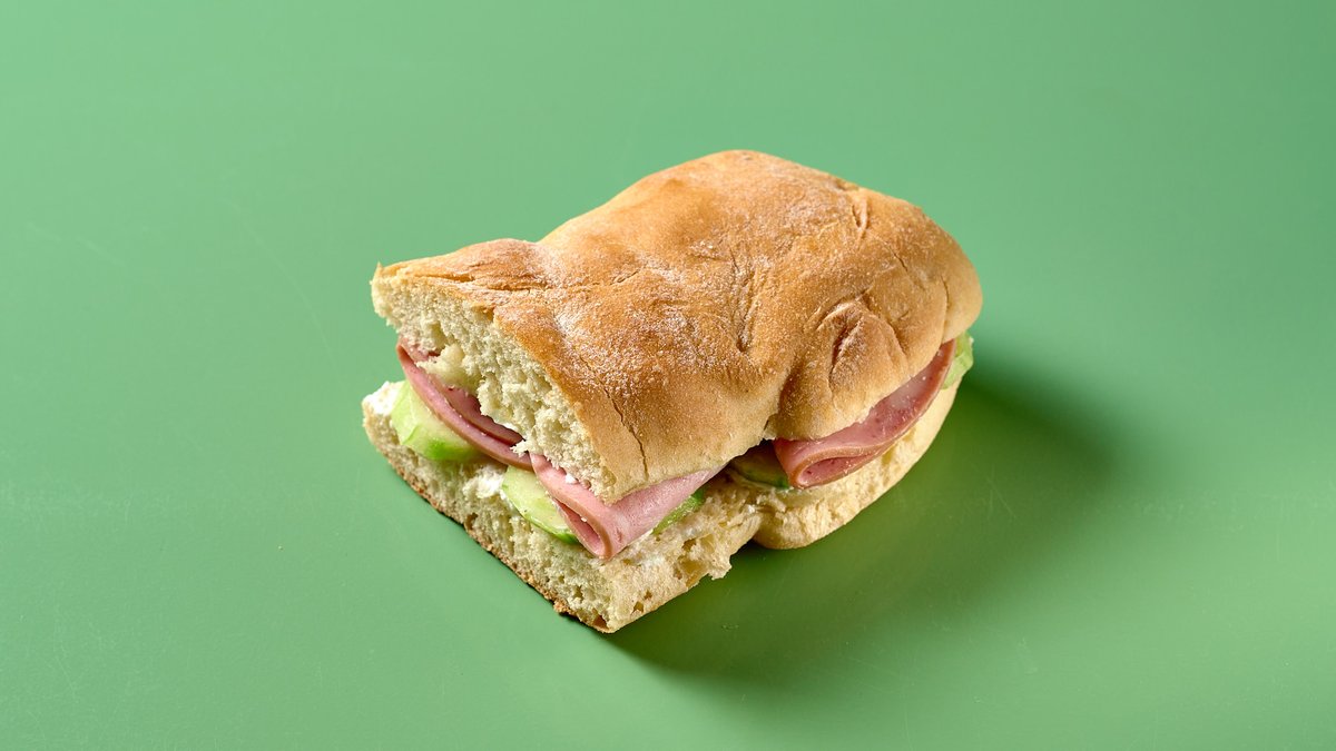 Ciabatta με μορταδέλα, κατίκι Δομοκού και αγγούρι