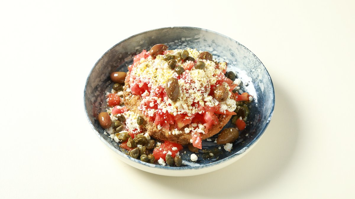Με φρέσκο κρεμμύδι, ντοματίνια αγγούρι τουρσί και μυρωδικά