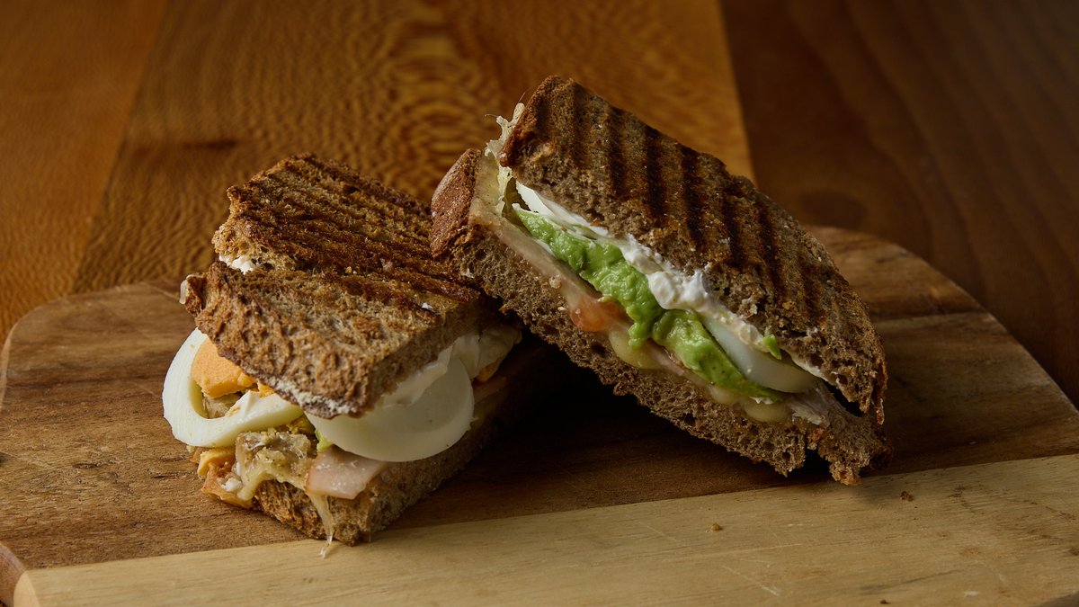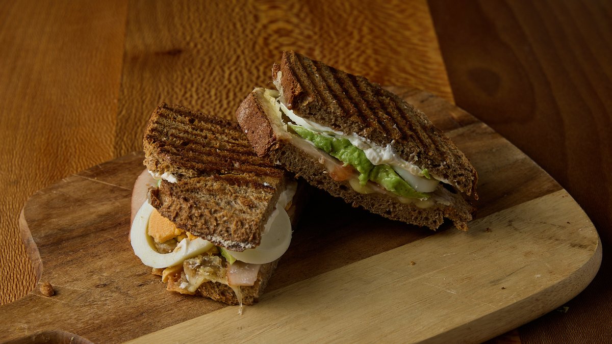 Με gouda, γαλοπούλα, cream cheese, αυγό βραστό και avocado