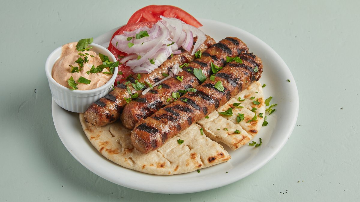 Με ανάμεικτο κιμά μοσχάρι και αρνί. Συνοδεύεται από πίτα και σως γιαουρτιού