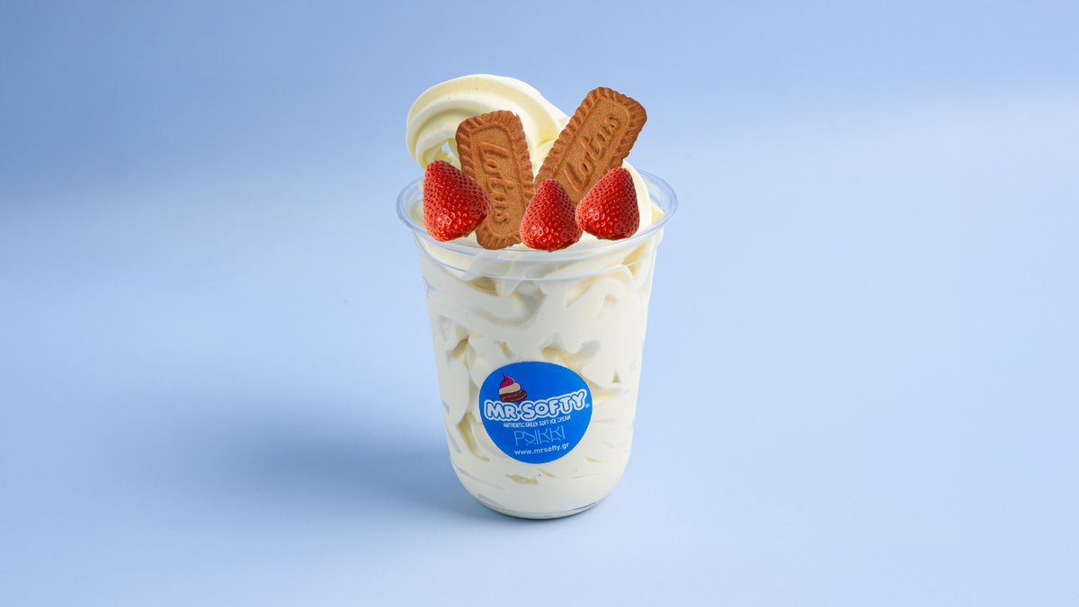Lotus Μπισκότο κανέλας με επιλογή της γεύσης παγωτού + φράουλες