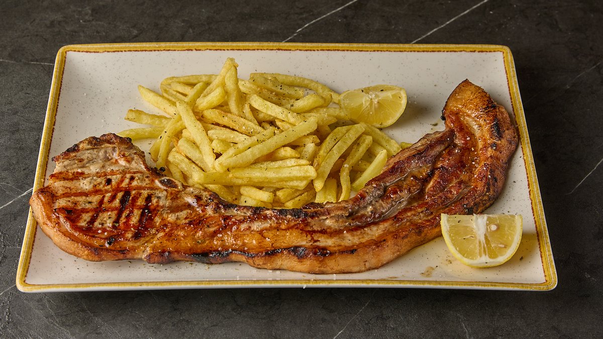 800γρ. Συνοδεύεται με φρέσκες πατάτες τηγανητές.