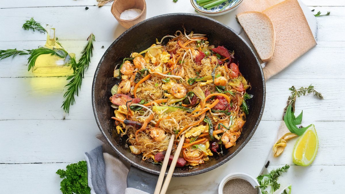 Rice noodles με γαρίδες