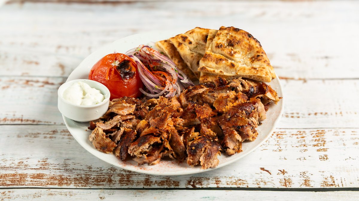 Συνοδεύεται από μια πίτα, φρέσκια ντομάτα, και σάλτσα Καππαδοκίας