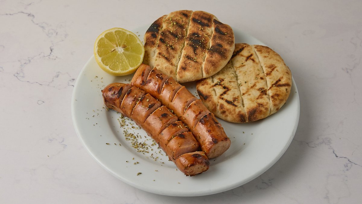 Συνοδεύεται από πατάτες τηγανητές, ντομάτα, κρεμμύδι, τζατζίκι και πίτα