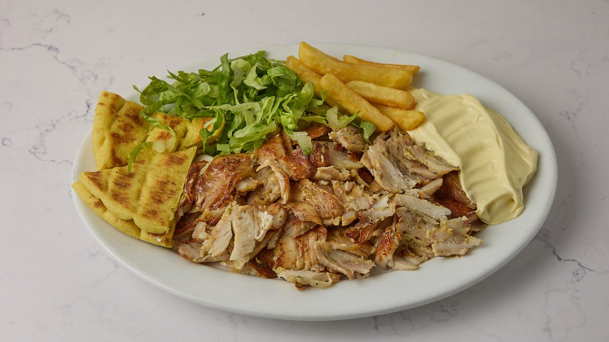 3 Τεμάχια. Συνοδεύεται από πατάτες τηγανητές, ντομάτα, κρεμμύδι, σως γιαουρτιού και πίτα