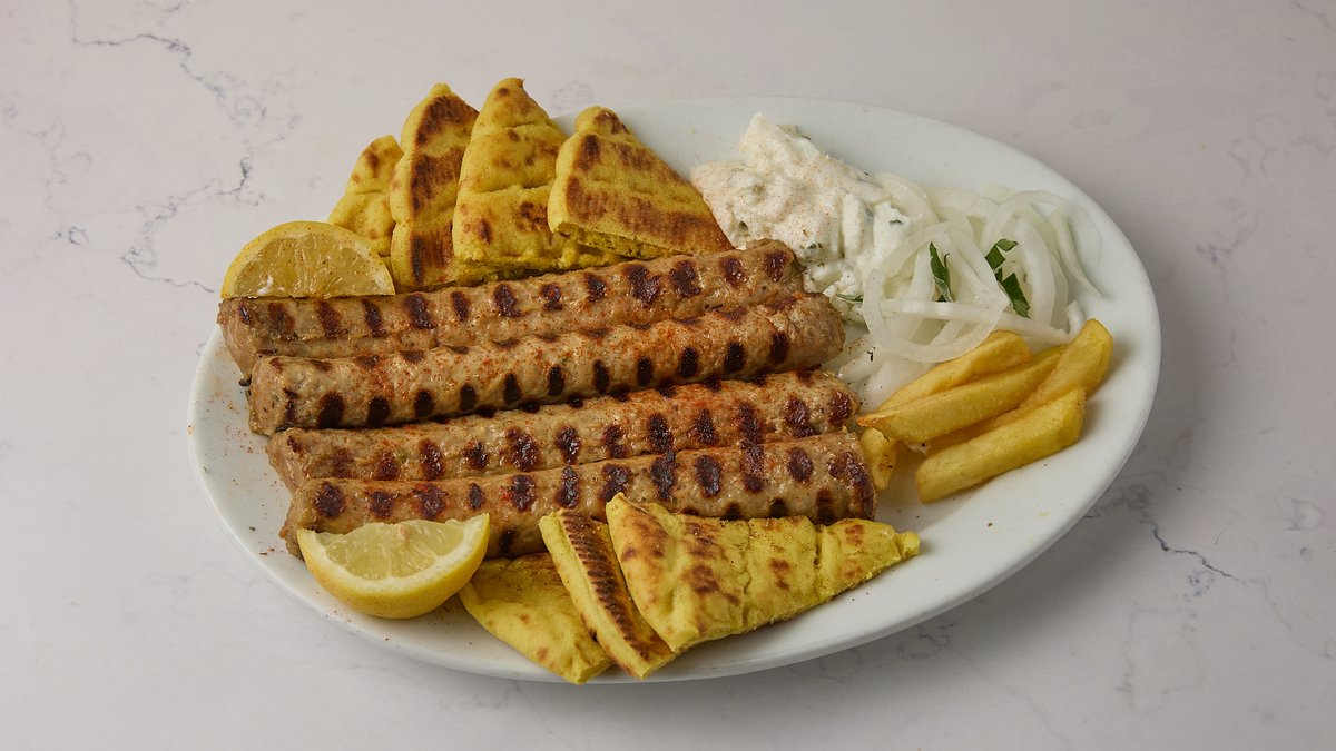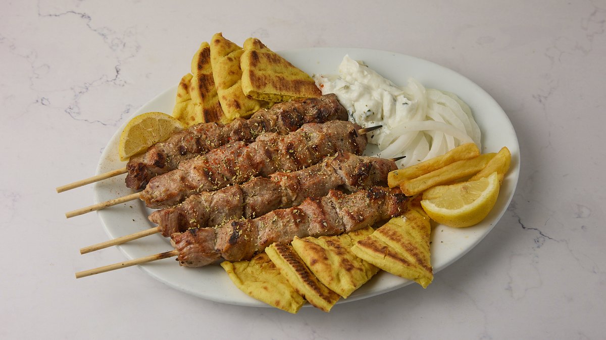 4 Τεμάχια. Συνοδεύεται από πατάτες τηγανητές, ντομάτα, κρεμμύδι, σως γιαουρτιού και πίτα