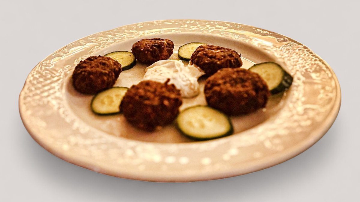 3 Τεμάχια. Συνοδεύεται από πίτα ψημένη, ντομάτα, πιπεριές και sauce γιαουρτιού με φρέσκο βασιλικό
