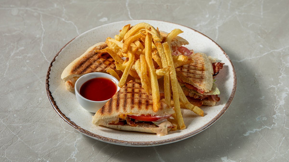 Με ψωμί villagio, φιλέτο κοτόπουλο, cheddar, μπέικον, iceberg, ντομάτα και mayo chili sauce. Συνοδεύεται από πατάτες τηγανητές