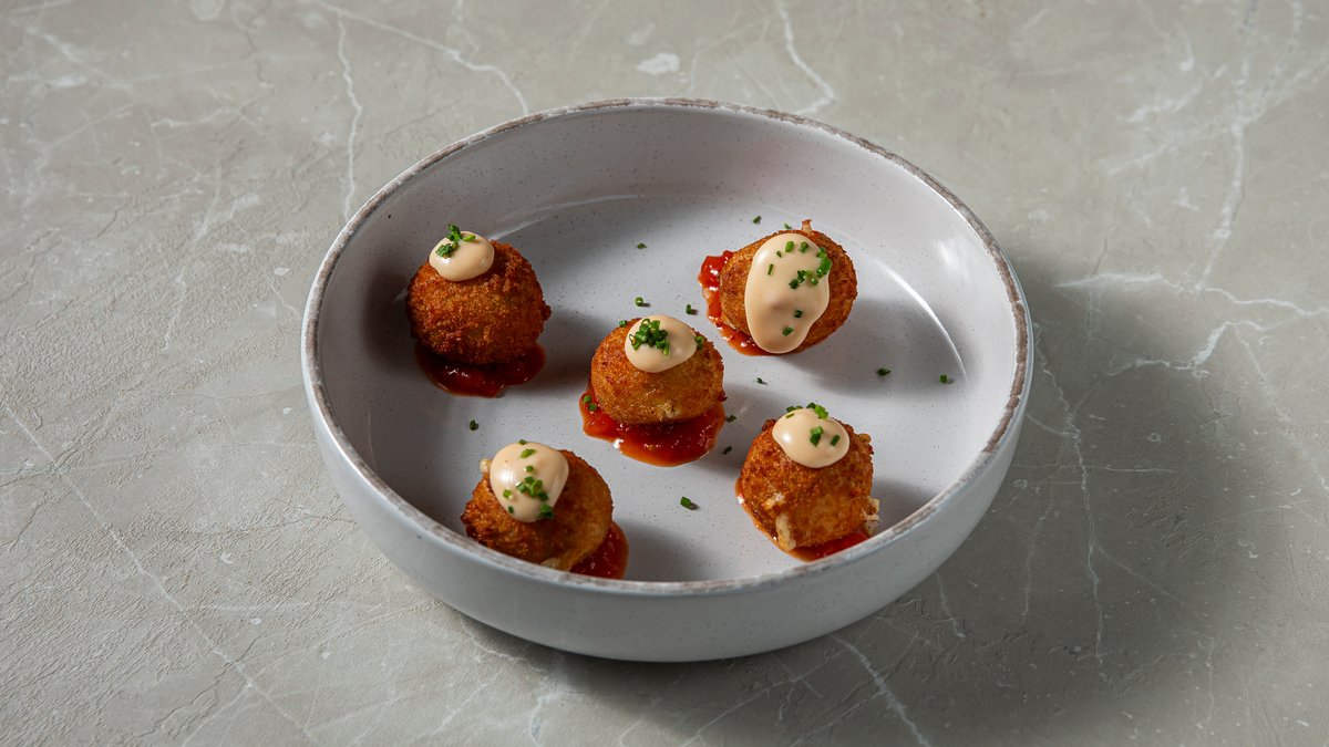 Με black Angus κιμά μαγειρεμένο, ντοματίνια confit και pecorino flakes