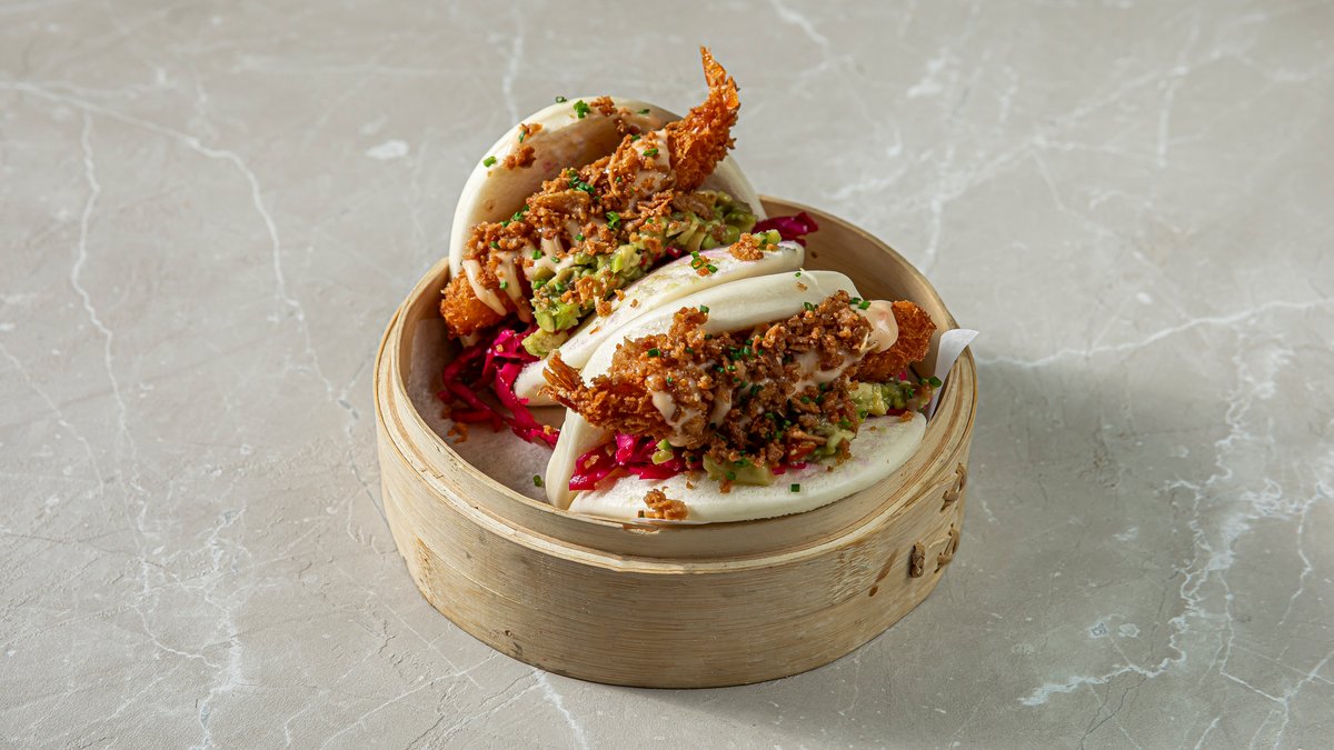 2 Τεμάχια. Με γαρίδες tempura, πίκλα λάχανο, guacamole, κρεμμύδι τηγανητό και sweet chili mayo