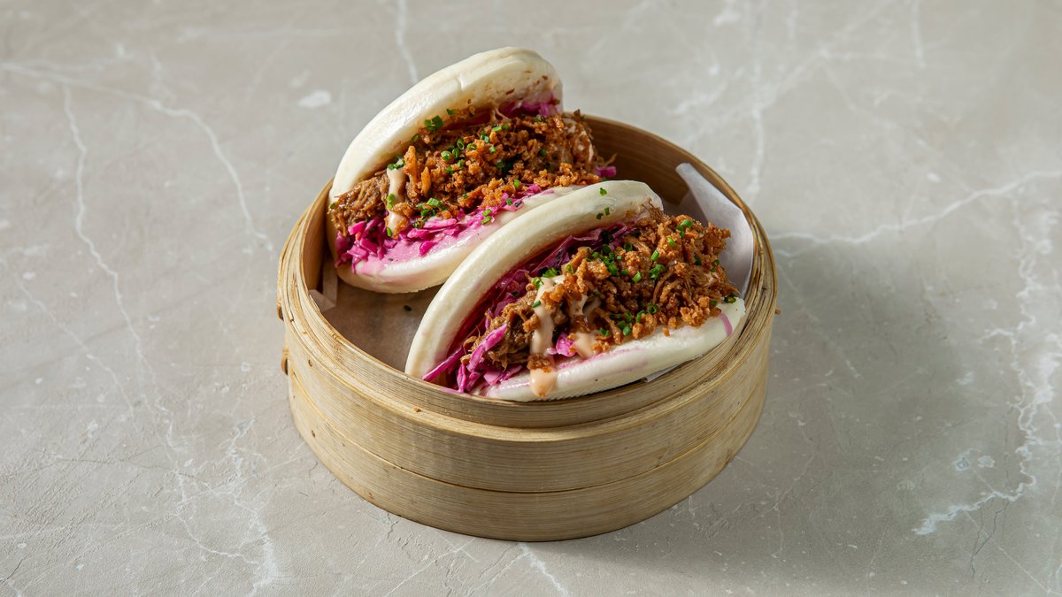 2 Τεμάχια. Με pulled pork, coleslaw, κρεμμύδι τηγανητό και hoisin sauce