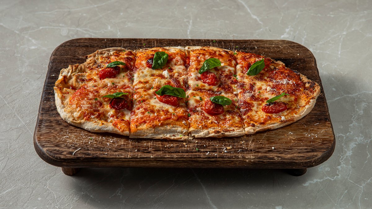 Με σάλτσα ντομάτας San marzano, mozzarella και φρέσκο βασιλικό