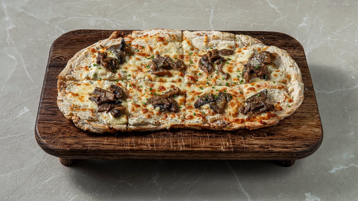 Με σάλτσα μαύρης τρούφας, ποικιλία 3 μανιταριών και mozzarella