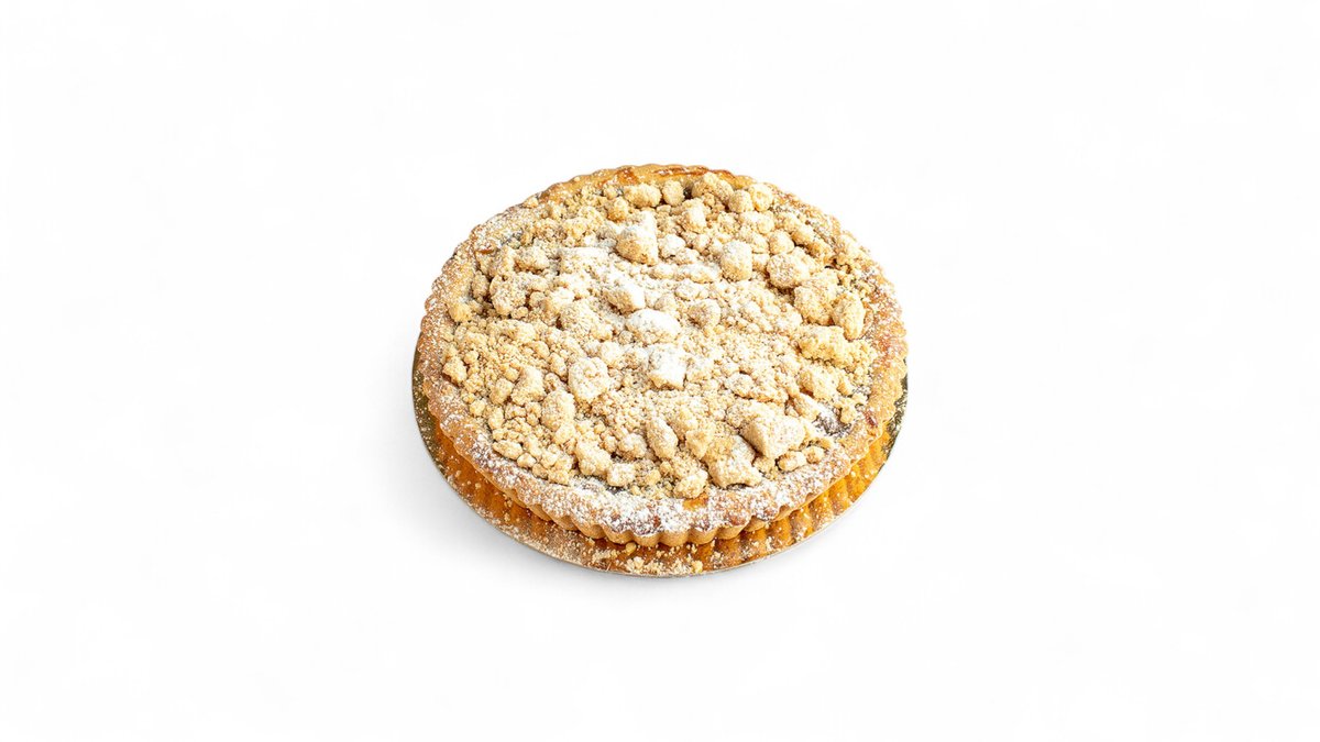 Τάρτα βουτύρου, κρέμα φράτζιπαν, μαυροκέρασο και τραγανό crumble βουτύρου