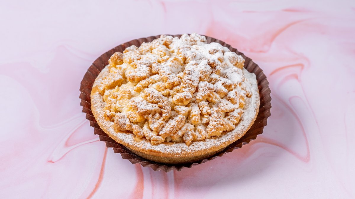 Ατομική μηλόπιτα με αρωματική γέμιση μήλου και τραγανή επικάλυψη crumble. Μια κλασική επιλογή για όσους αγαπούν τα γλυκά με φρούτα.