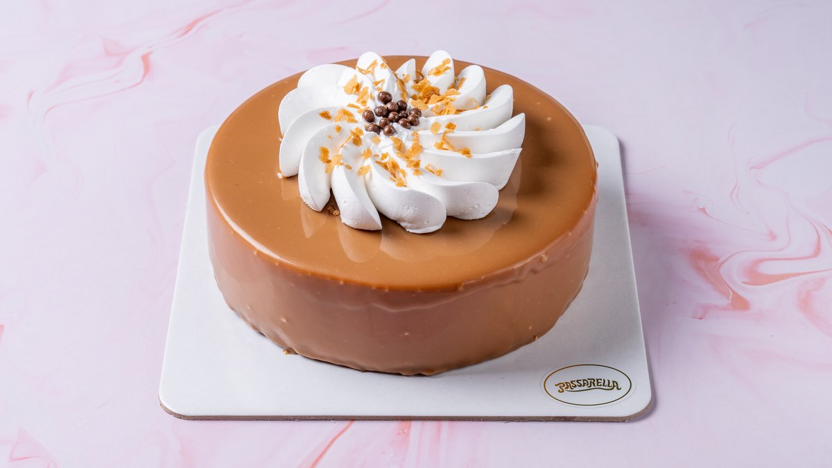 Mousse σοκολάτας και πραλίνας με τραγανά αμύγδαλα και βελούδινη mousse gianduja, ολοκληρωμένη με επικάλυψη σοκολάτας γάλακτος και αμυγδάλων. Μια πλούσια, premium σύνθεση για σοκολατένιες απολαύσεις