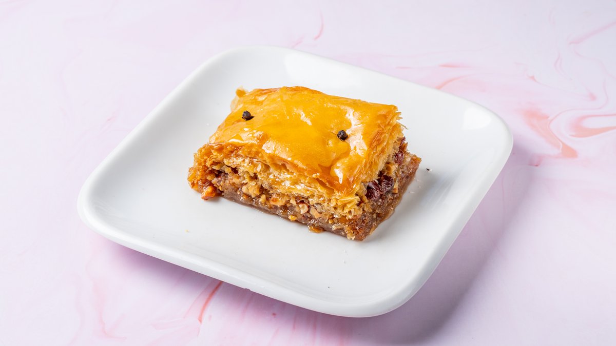 Ατομικός μπακλαβάς με λεπτά, τραγανά φύλλα, πλούσια γέμιση καρυδιού και αρωματικό σιρόπι.