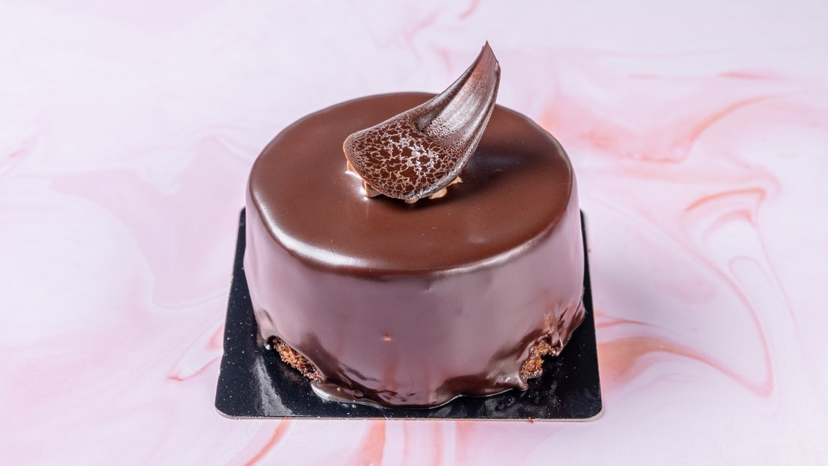 8 Ατόμων. Cake σοκολάτας με τραγανή βάση μπισκότου, γέμιση πραλίνας φουντουκιού κομμάτια μπισκότου και επικάλυψη με γεύση σοκολάτας Bitter. Μια έντονη, σοκολατένια εμπειρία με πλούσια υφή και ισορροπημένη γλυκύτητα