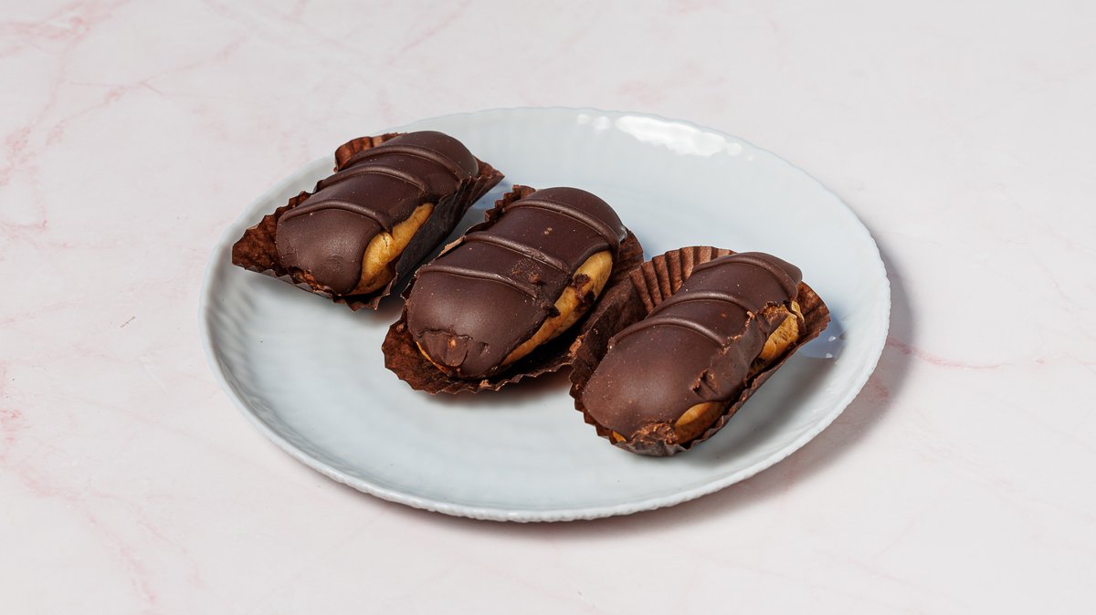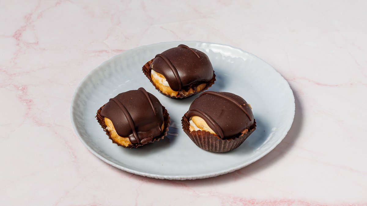 Αφράτα choux γεμισμένα με κρέμα patisserie βανίλιας και επικάλυψη από πλούσια ganache bitter σοκολάτας, χωρίς προσθήκη ζάχαρης. Κλασική απόλαυση σε sugar free εκδοχή