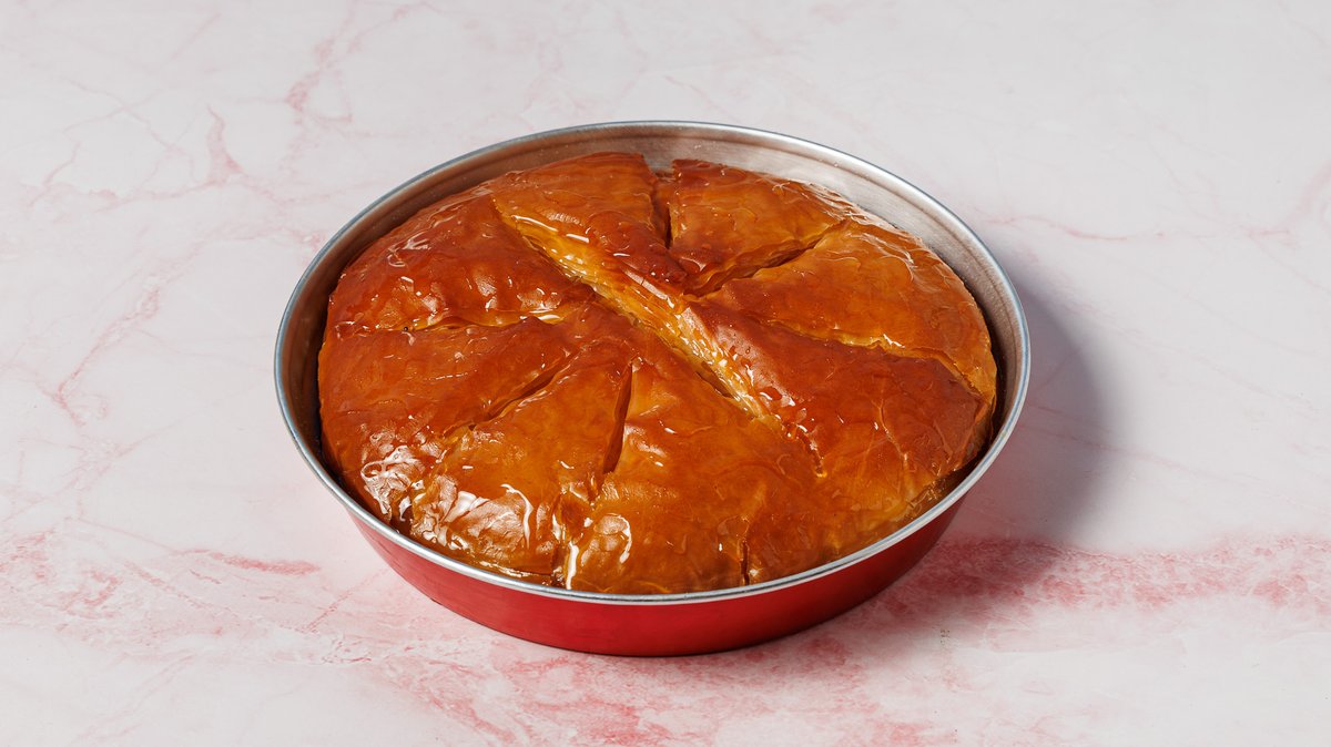 8 Ατόμων. Χειροποίητο γαλακτομπούρεκο με τραγανό φύλλο, πλούσια κρέμα και αρωματικό σιρόπι