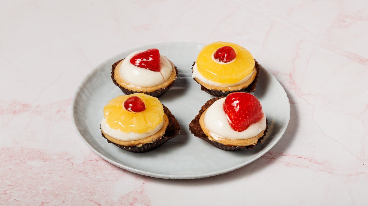 Ταρτάκια με κρέμα και φρουτένια γεύση.Ενδέχεται να υπάρχει απόκλιση στο βάρος 20-30 g
