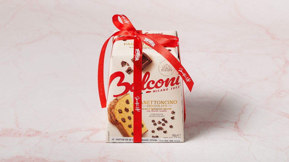90 g. Αφράτο panettone με σοκολατένιες σταγονες. Γιορτινή απόλαυση σε ατομική μερίδα