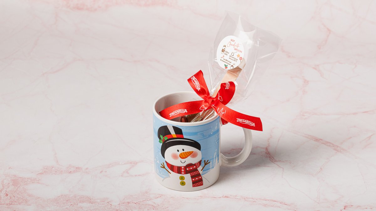 Χριστουγεννιάτικη κούπα με 70 g σοκολάτας σε spoon για ένα απολαυστικό ρόφημα σοκολάτας