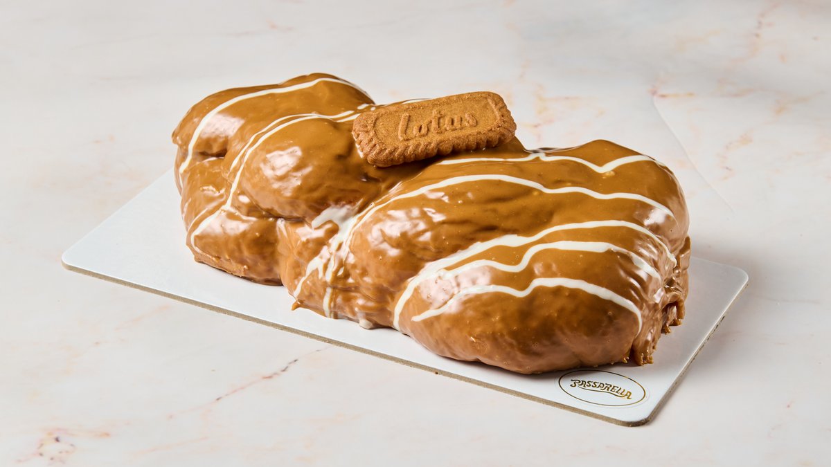 10 Ατόμων. Αφράτο τσουρέκι με πλούσια γέμιση πραλίνας Lotus, επικαλυμμένο με πραλίνα Lotus, λευκή σοκολάτα και κομμάτια μπισκότου Lotus. Ένας σοκολατένιος και τραγανός συνδυασμός, αγαπημένο στις τάσεις της σεζόν και must-have για όσους ακολουθούν τα πιο γλυκά trends