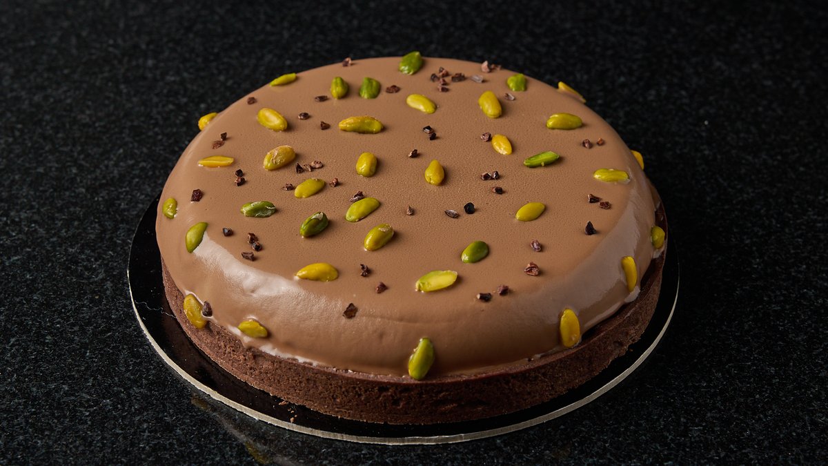 Με pate sablee κακάο , crunchy καταίφι με πραλίνα φυστίκι αιγίνης , ganache σοκολάτας 60%, πραλίνα φυστικι 50% , ganache montee σοκολάτα γάλακτος