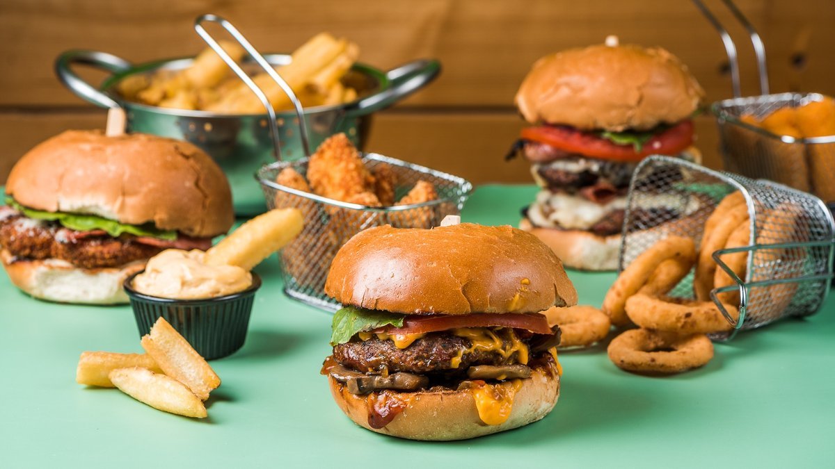 Με μοσχαρίσιο μπιφτέκι, cheddar, bacon, καραμελωμένα κρεμμύδια, ντομάτα, μαρούλι, BBQ sauce