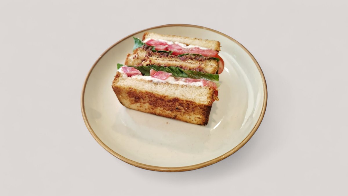 Ψωμάκι sando, μαρμελάδα μπέικον, κρέμα κατσικίσιου κορμού, ντομάτα, μαρούλι και wholegrain μουστάρδα