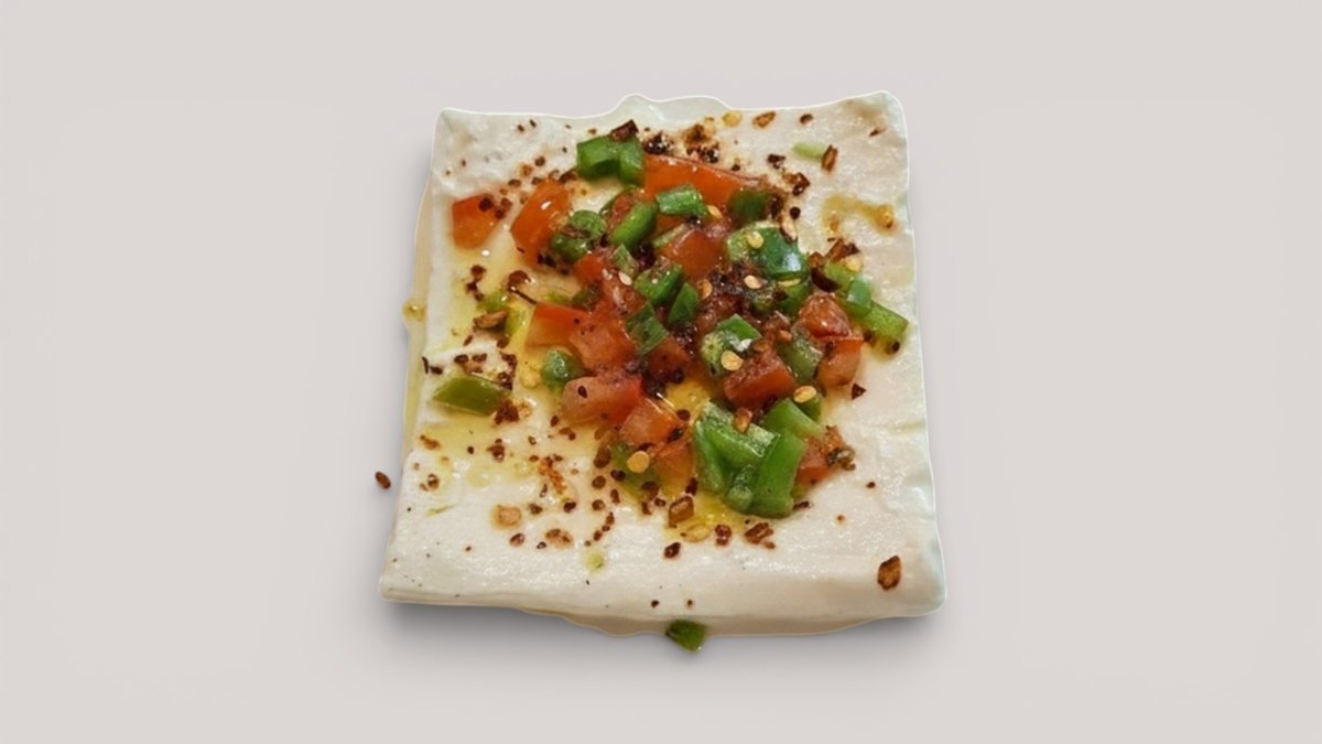 Φέτα Μυτιλήνης, ντομάτα, πιπεριά και μπούκοβο