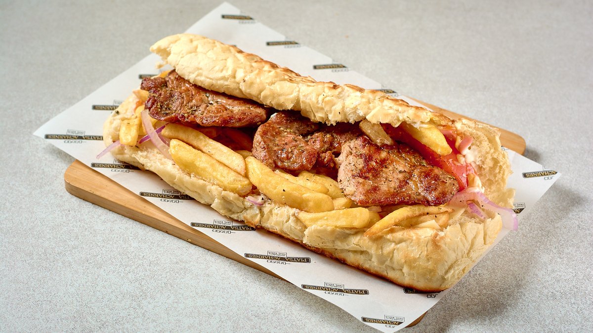 Σάντουιτς 1 τεμάχιο καλαμάκι χοιρινό με τα υλικά της επιλογής σου