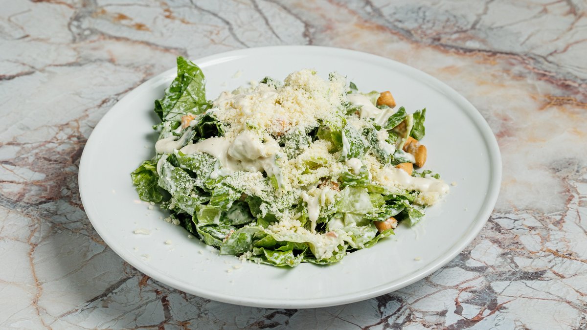 Με παναρισμένο τρυφερό στήθος κοτόπουλο, παρμεζάνα, ντομάτα, λόλα, καραμελωμένο κρεμμύδι και sauce Caesar`s