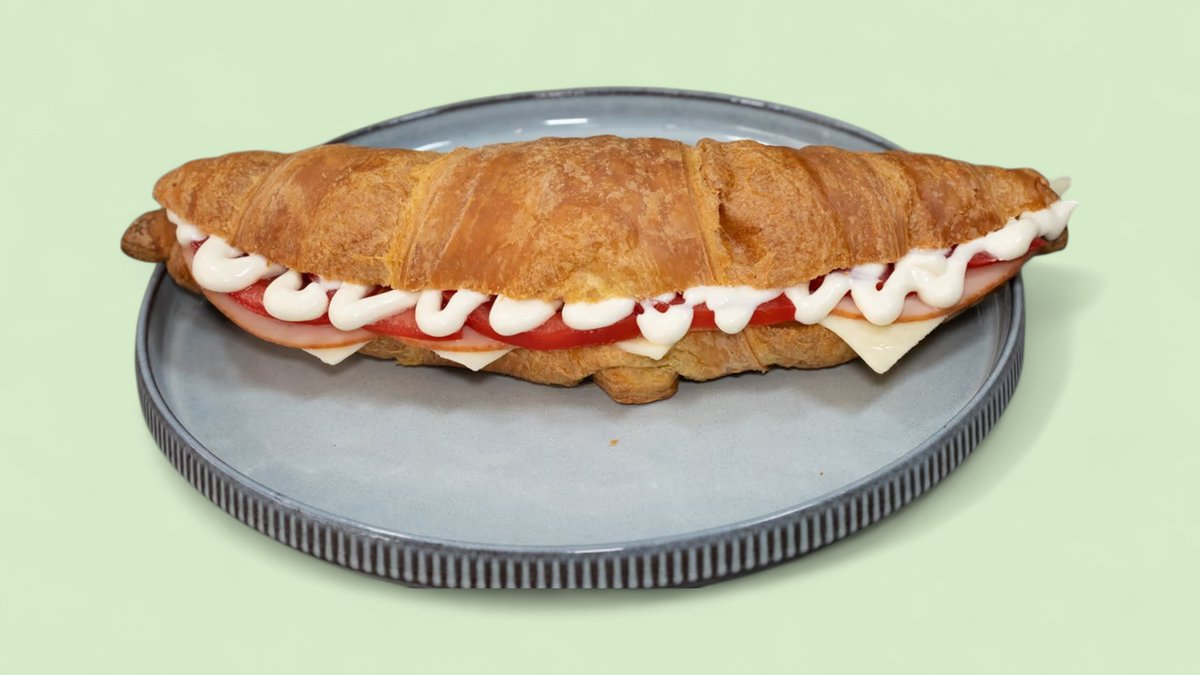 Κρουασάν Βουτύρου, γαλοπούλα καπνιστή, Γκούντα, τομάτα, μαγιονέζα
