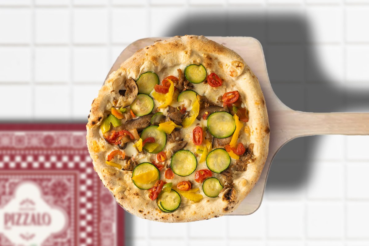 Με κολοκύθι, μελιτζάνα, πιπεριές, ιταλικές ντομάτες, stracchino και mozzarella fior di latte