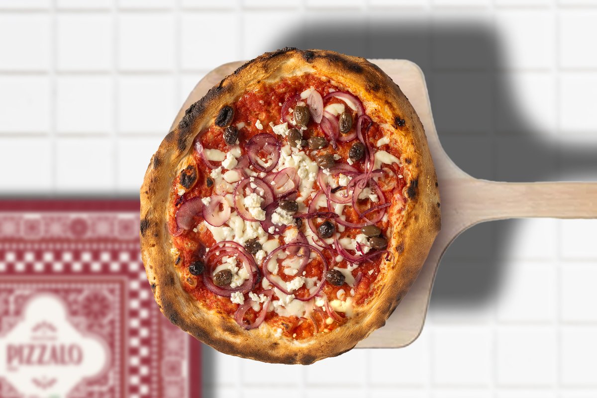 Με φέτα, ελιές, κόκκινο κρεμμύδι, mozzarella fior di latte και ντοματίνια