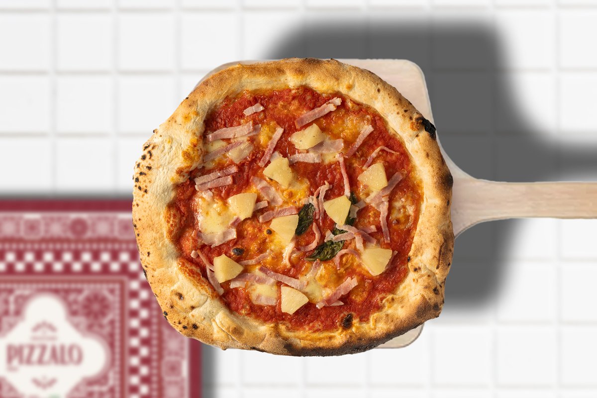 Με mozzarella fior di latte, ανανά, καπνιστό bacon και παραδοσιακή ιταλική σάλτσα ντομάτας