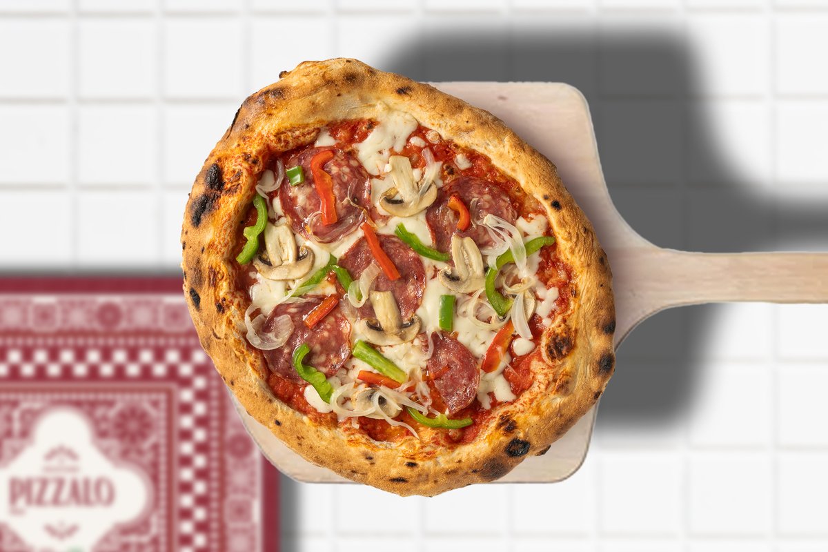 Με παραδοσιακό ιταλικό σαλάμι, λουκάνικο Τοσκάνης, πιπεριές, μανιτάρια, mozzarella fior di latte και κρεμμύδια